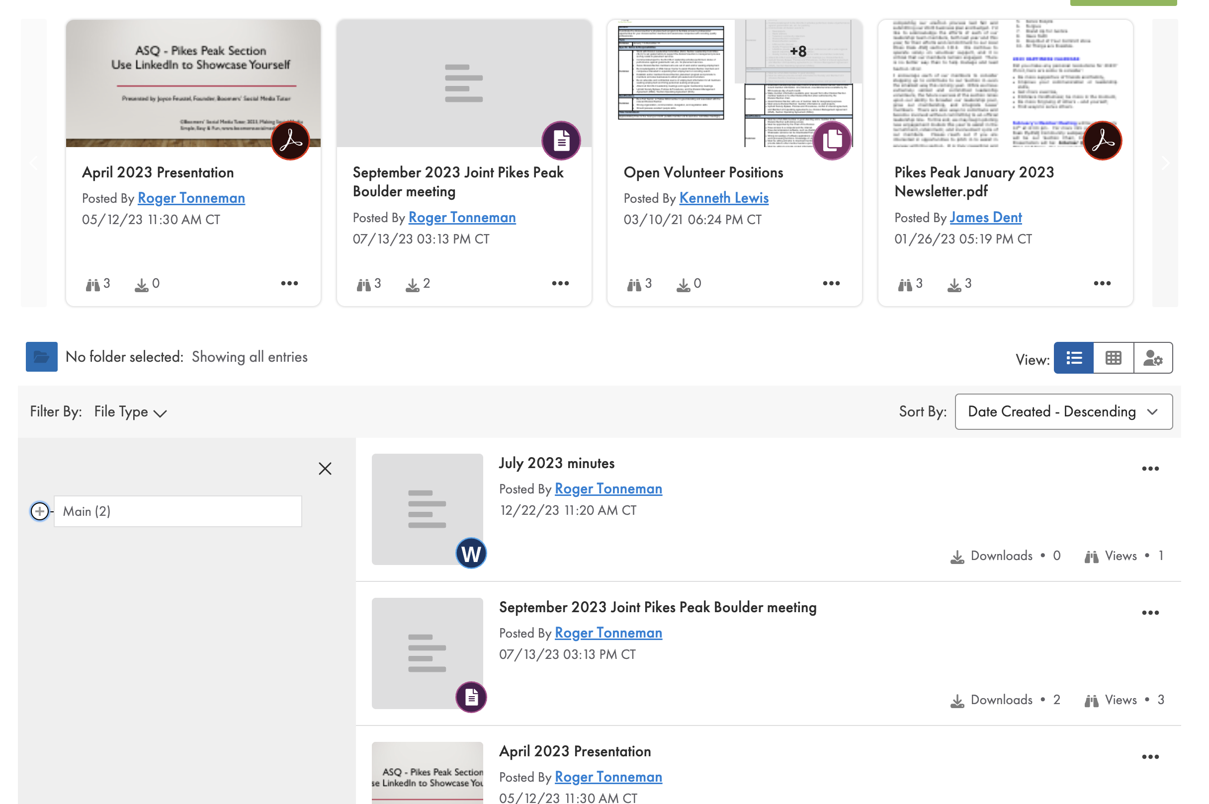 I'm trying to clean up our section's library and archiving old documents. I've created subfolders in the library for archiving past presentations, leadership minutes and newsletters.