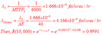 1.Assume you have three equal units that operate together as parallel units. The failure rate of each unit is λ=0.01. The reliability of a single unit for a 10-hour operation is R=e-0.1=0.90484 or ~90%..