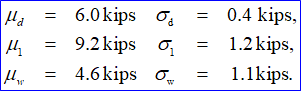 7. The total load on a building may often be represented as the sum of three contributions: the dead load d, from the weight of the structure; the live load 1, from human beings, furniture, and other movable weights; and the wind load w. Suppose that the loads from each of the sources on a support column are represented as normal distributions with the following properties: