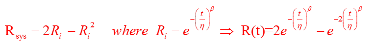 4.Suppose that two identical units are placed in active parallel. Each has a Weibull distribution with known 𝜂 and β > 1. Determine the system reliability.