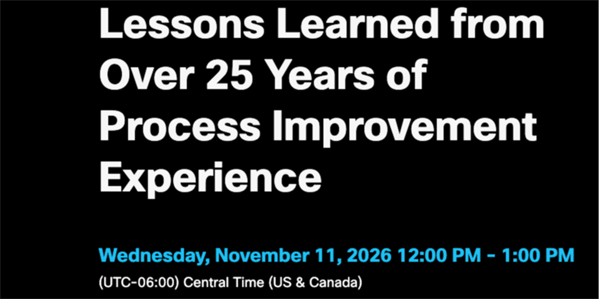 Nov 2026 Lessons Learned from Over 25 Years of Process Improvement Experience - with Brion Hurley