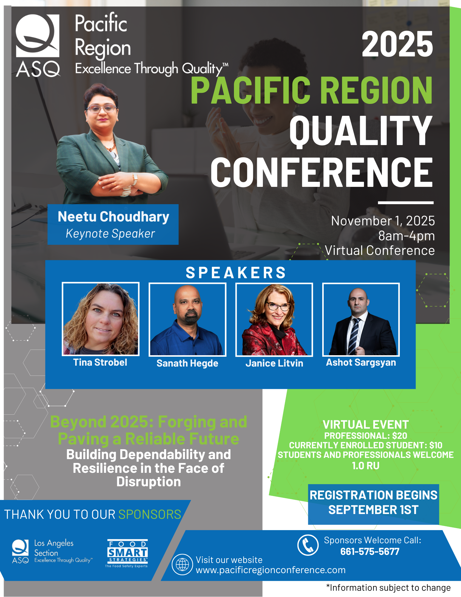 The Sixth Annual Pacific Region Quality Conference (PRQC) will be a virtual conference this year!